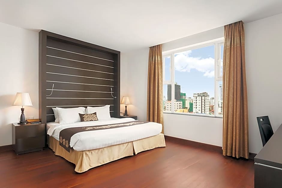 This spacious suite features living and dining areas and a kitchenette.